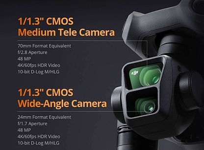.Camera: Hasselblad 4/3 CMOS, up to 100MP stills; 6K/60 video; 10‑bit D‑Log/D‑Log M/HLG.​ Gimbal: 3‑axis with advanced articulation for precise framing.​ Flight: Up to ~51–52 minutes; strong wind resistance.​ Sensing: Omnidirectional obstacle sensing with forward LiDAR assist.​ -Link/Range: O4+ transmission, long‑range, low‑latency feed.​ -Weight: ~1060 g class.
